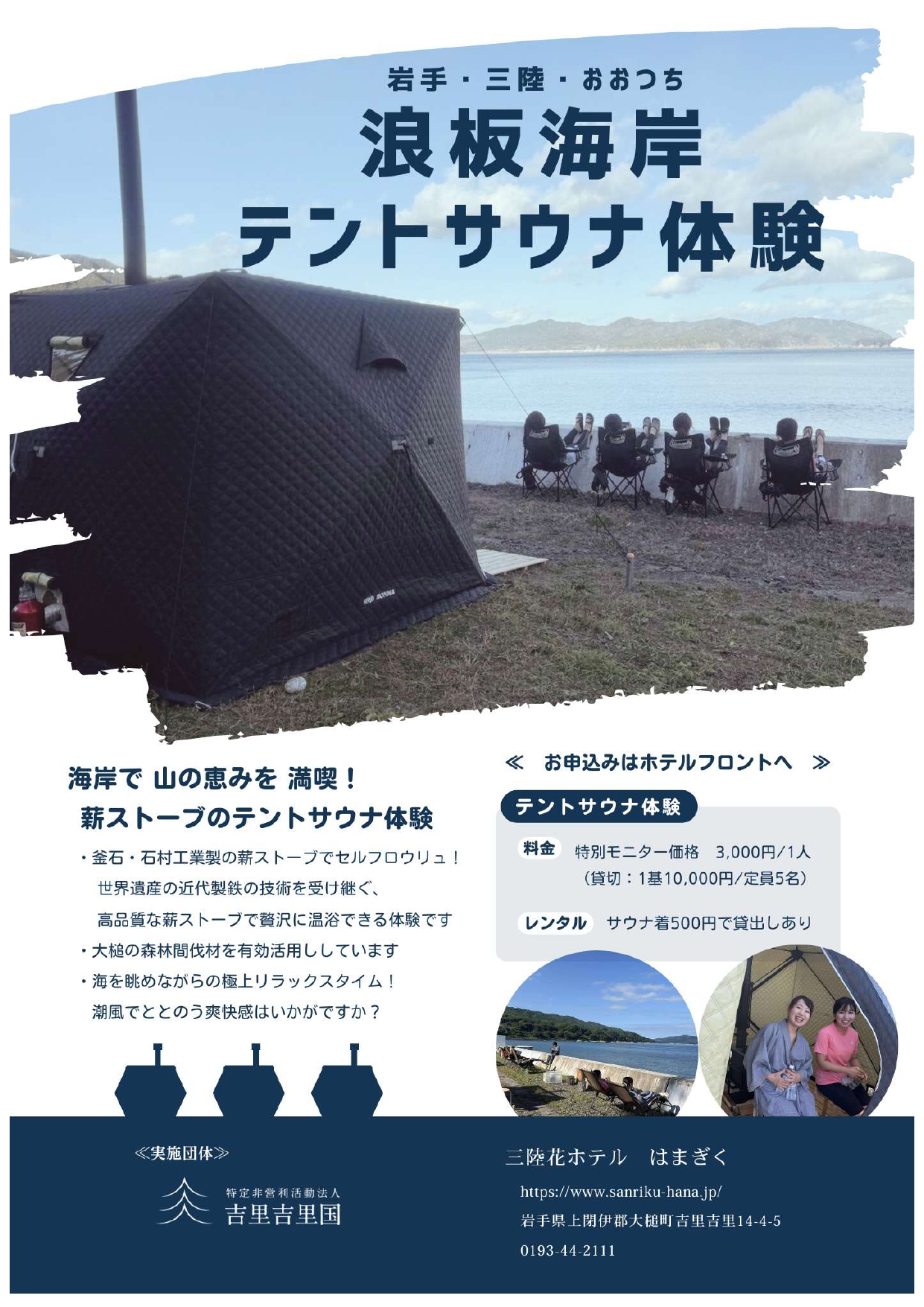 浪板海岸の海を目の前に、山の恵みを活かした『特別なテントサウナ』が展開中!