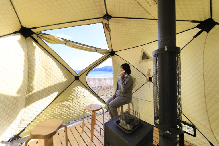🌊 【海まで数歩、薪ストーブとセルフロウリュを備えたテントサウナ】 💦