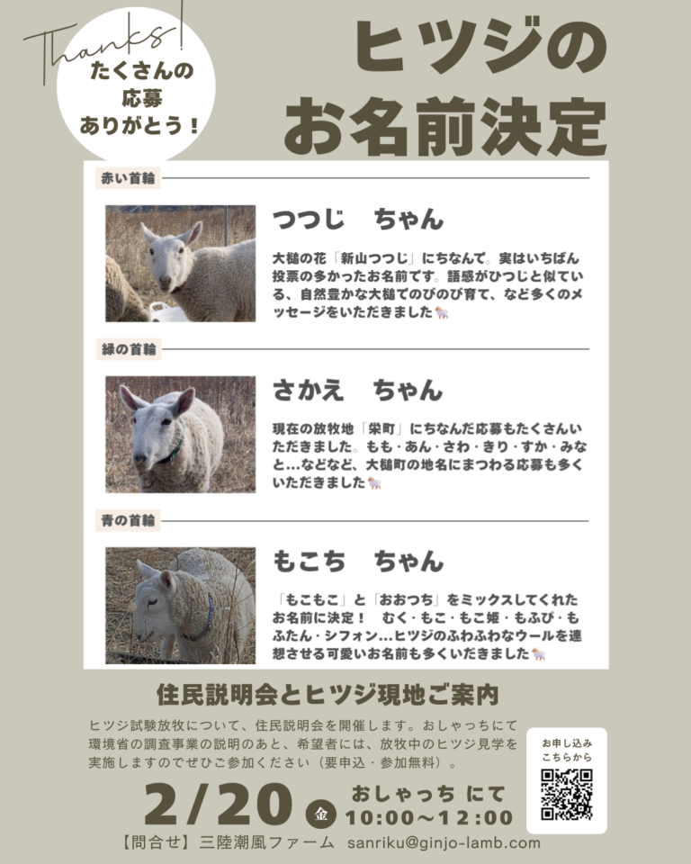 このたび、試験放牧中のヒツジたちのお名前が決定しました!