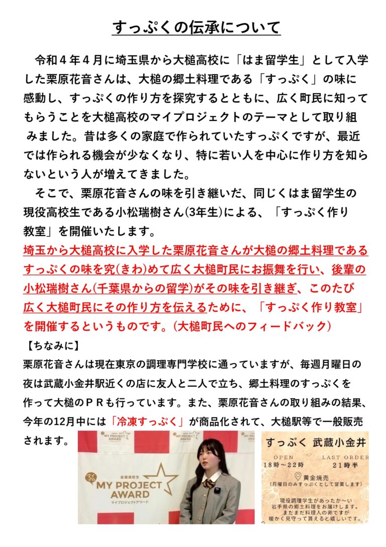 🍚大槌高校生が教える「すっぷく料理教室」開催のお知らせ🥢
