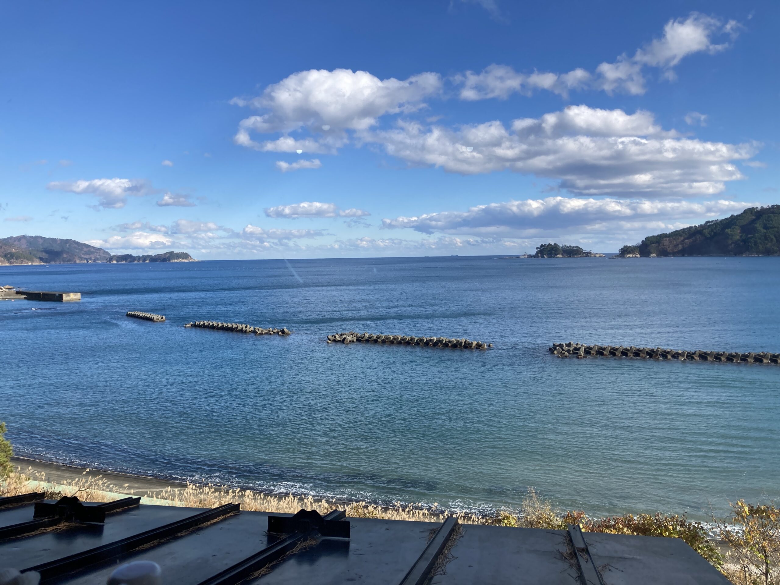 浪板海岸と船越湾の青い海を眺めながら三陸の海の幸を味わえます。