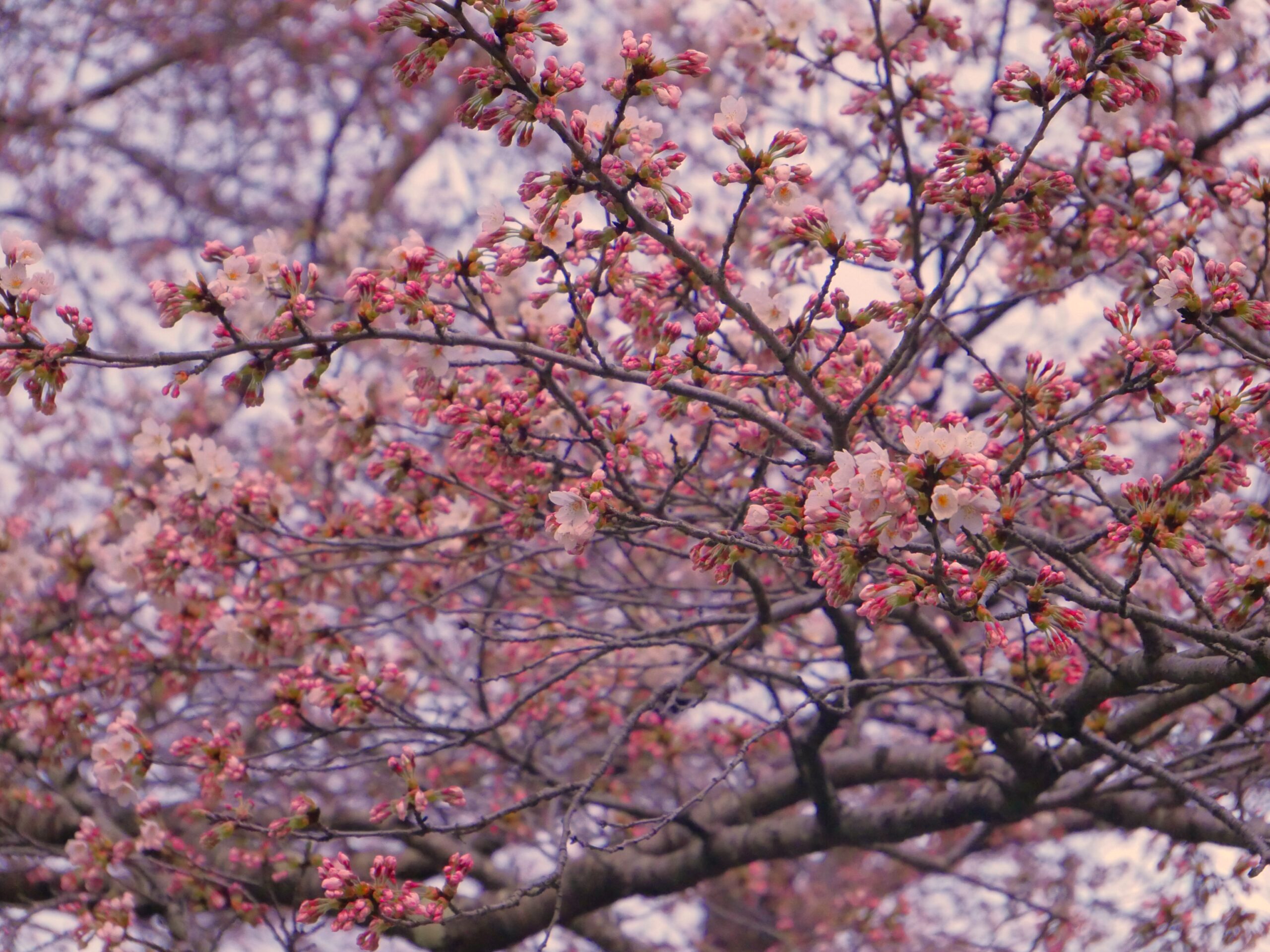 吉里吉里駅周辺の桜は2〜3分咲きではありましたが、つぼみがほんのりとピンクに染まり、夜のライトアップによってまるで満開のような艶やかさに。