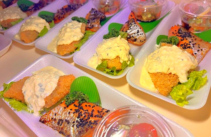 今回は岩手大槌サーモン推進協議会のご協力のもと、「岩手大槌サーモン」を使ったお振舞を中心とした飲食のお振舞と、吉里吉里公民館の芳賀館長ご協力のもと、昔の吉里吉里周辺の写真も展示させて頂きました。