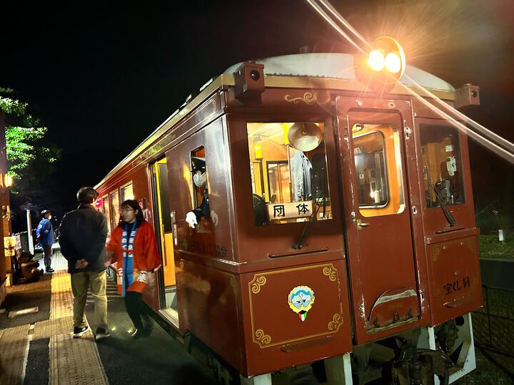 「吉里吉里駅」へと向かうこの夜桜列車。