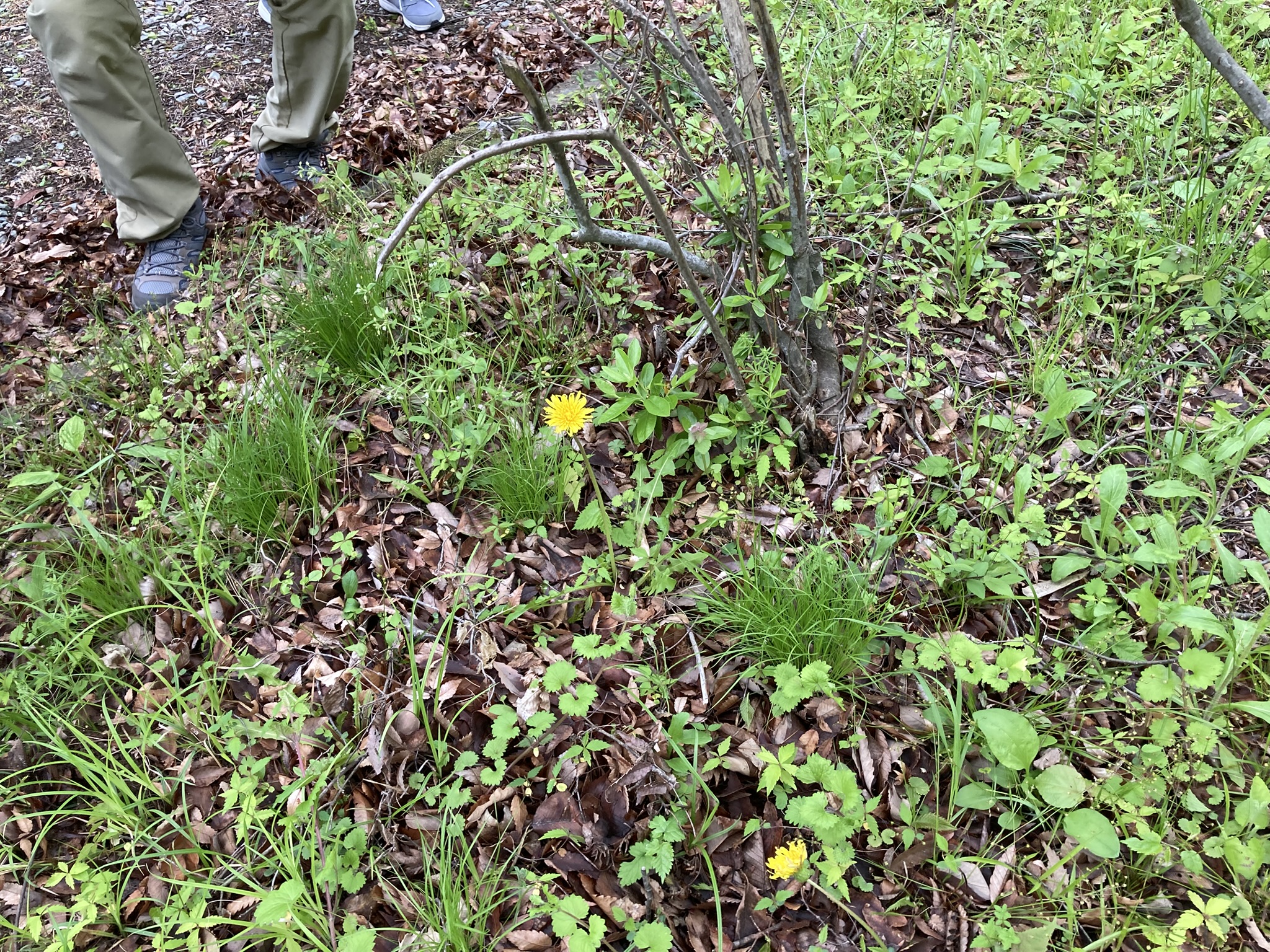 そして、いよいよ城山公園に入っていきます。入口広場では、さっそく珍しい「日本たんぽぽ」を発見!