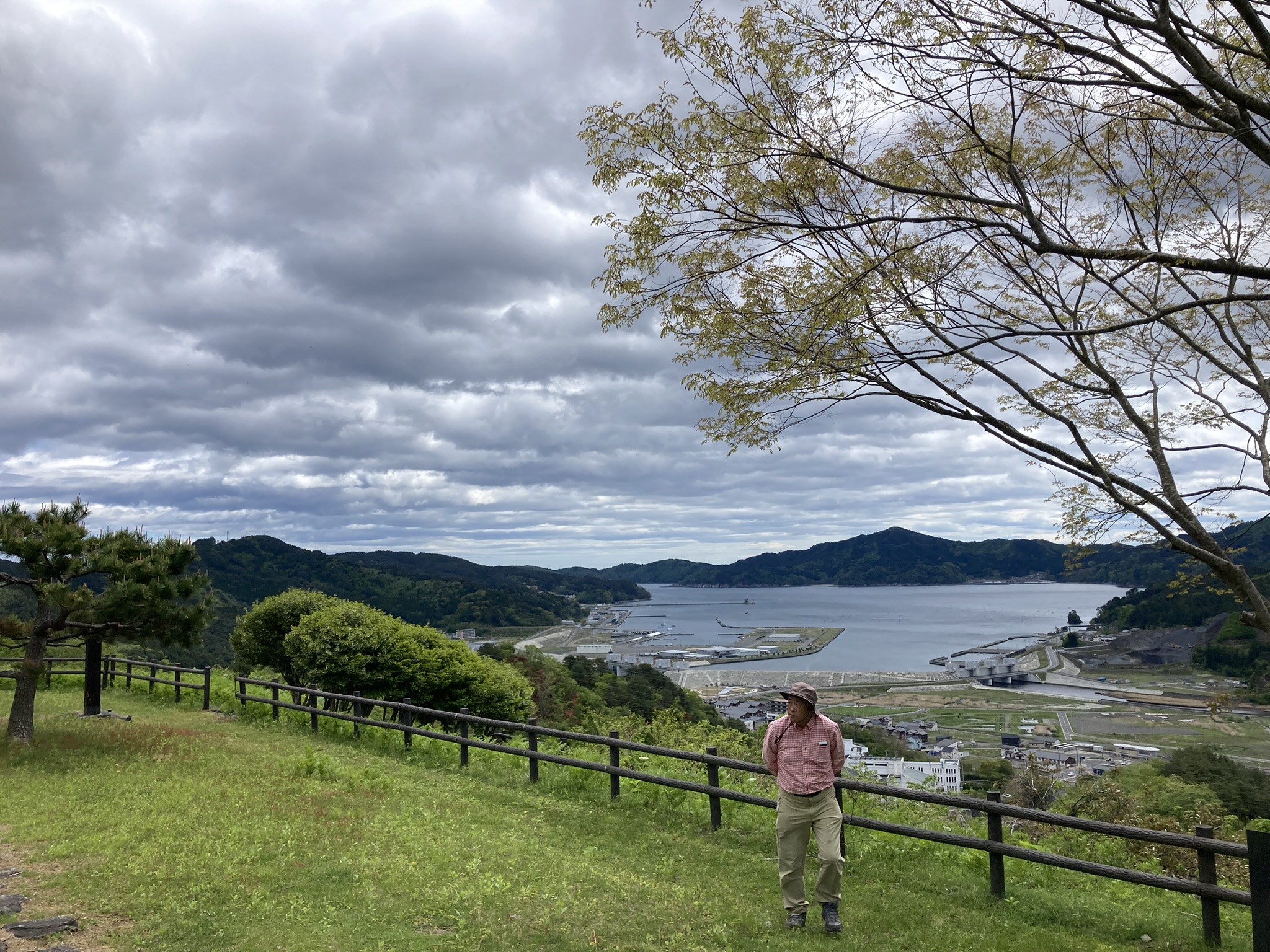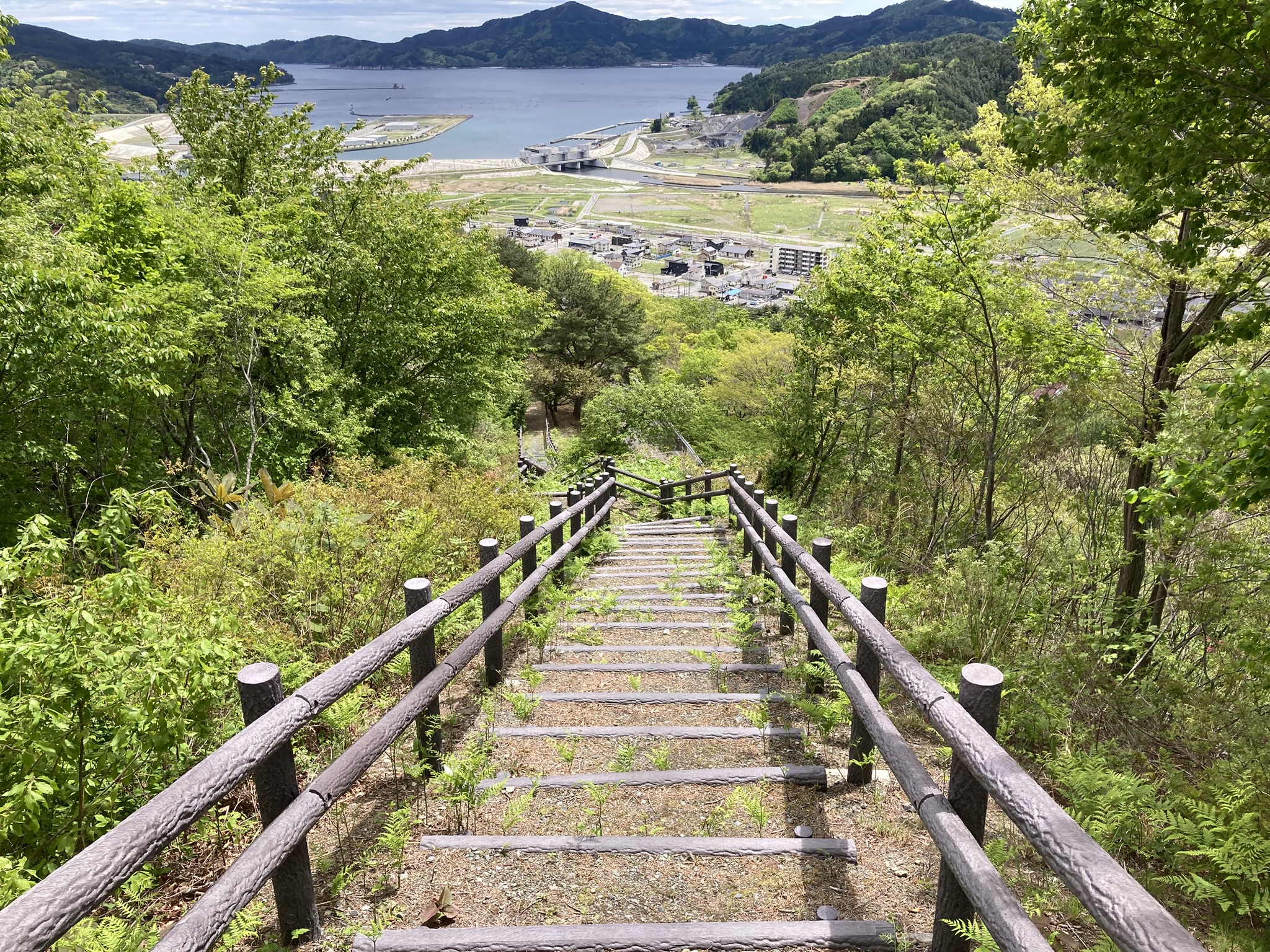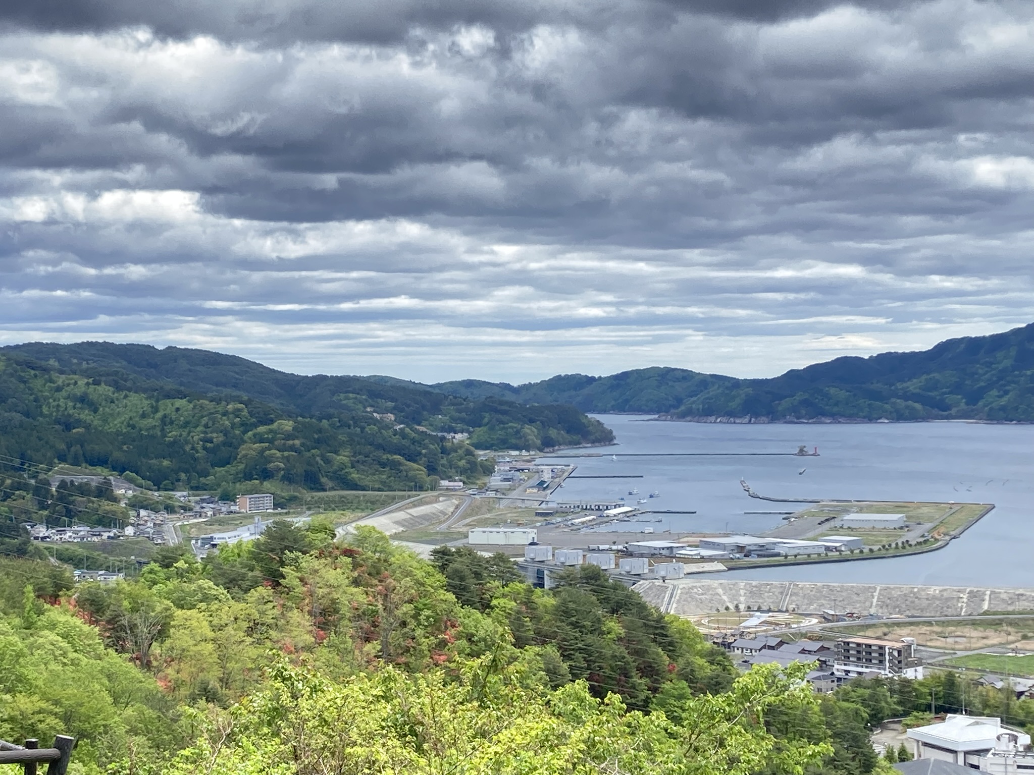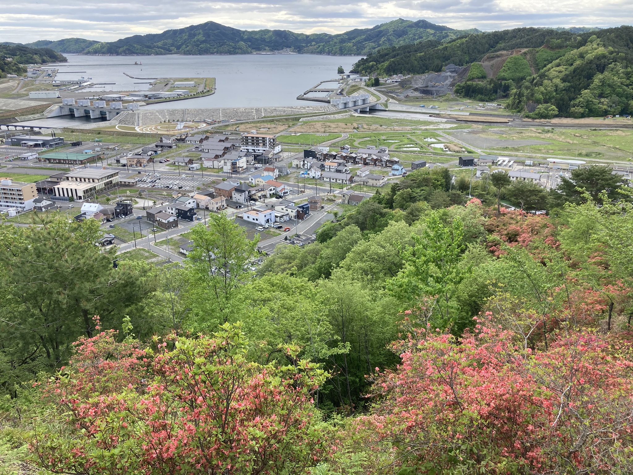 ツツジの回廊を登りきると、「展望休憩舎(高舘)」に到着。ここからは、大槌町の街並みと大槌湾が眼下に広がります。