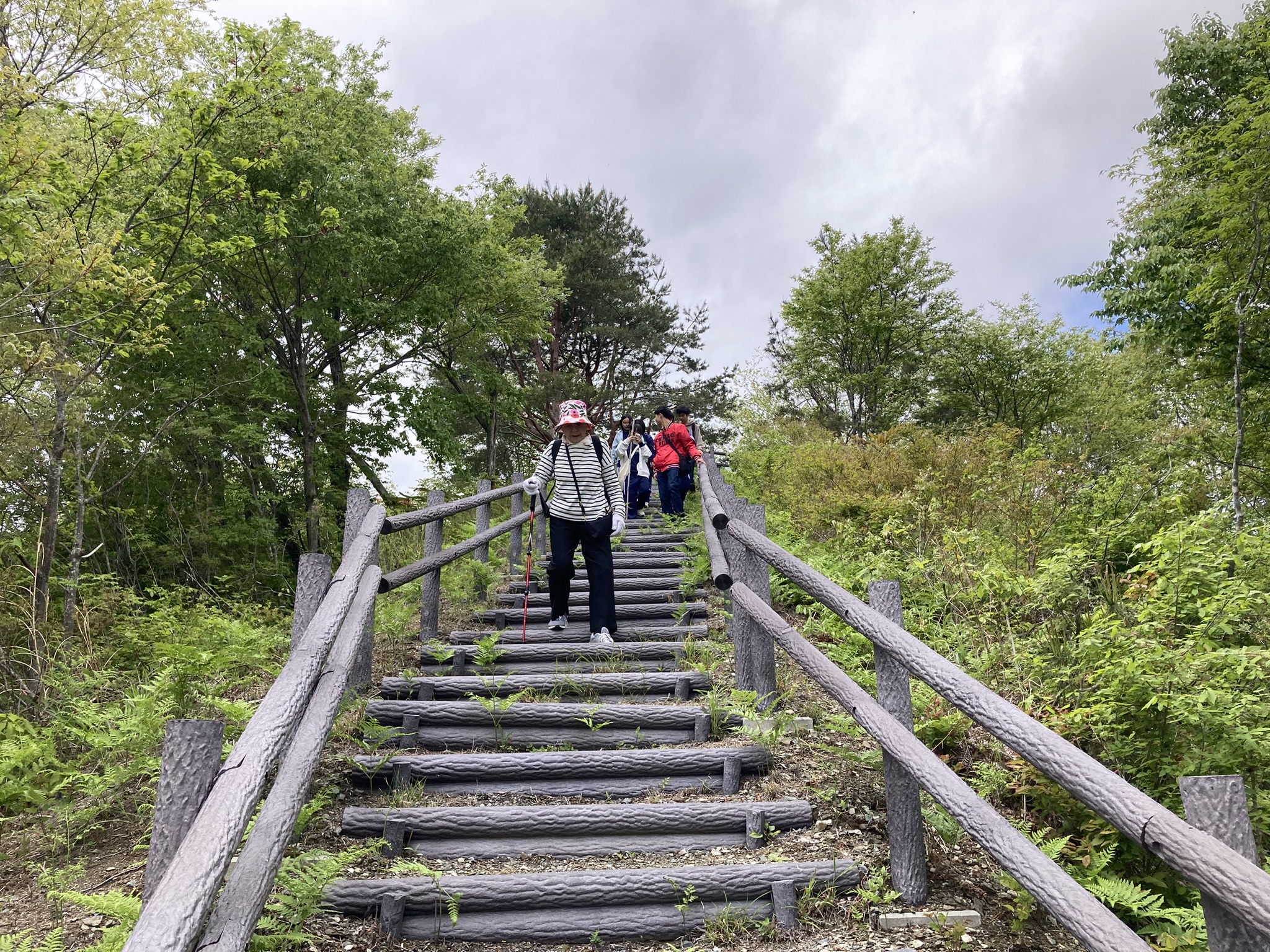 ゆっくり歩いてきたとはいえ、100メートル以上を一気に登ってきたので、大人たちは少しお疲れモード。…でも、高校生は元気いっぱいです(笑)